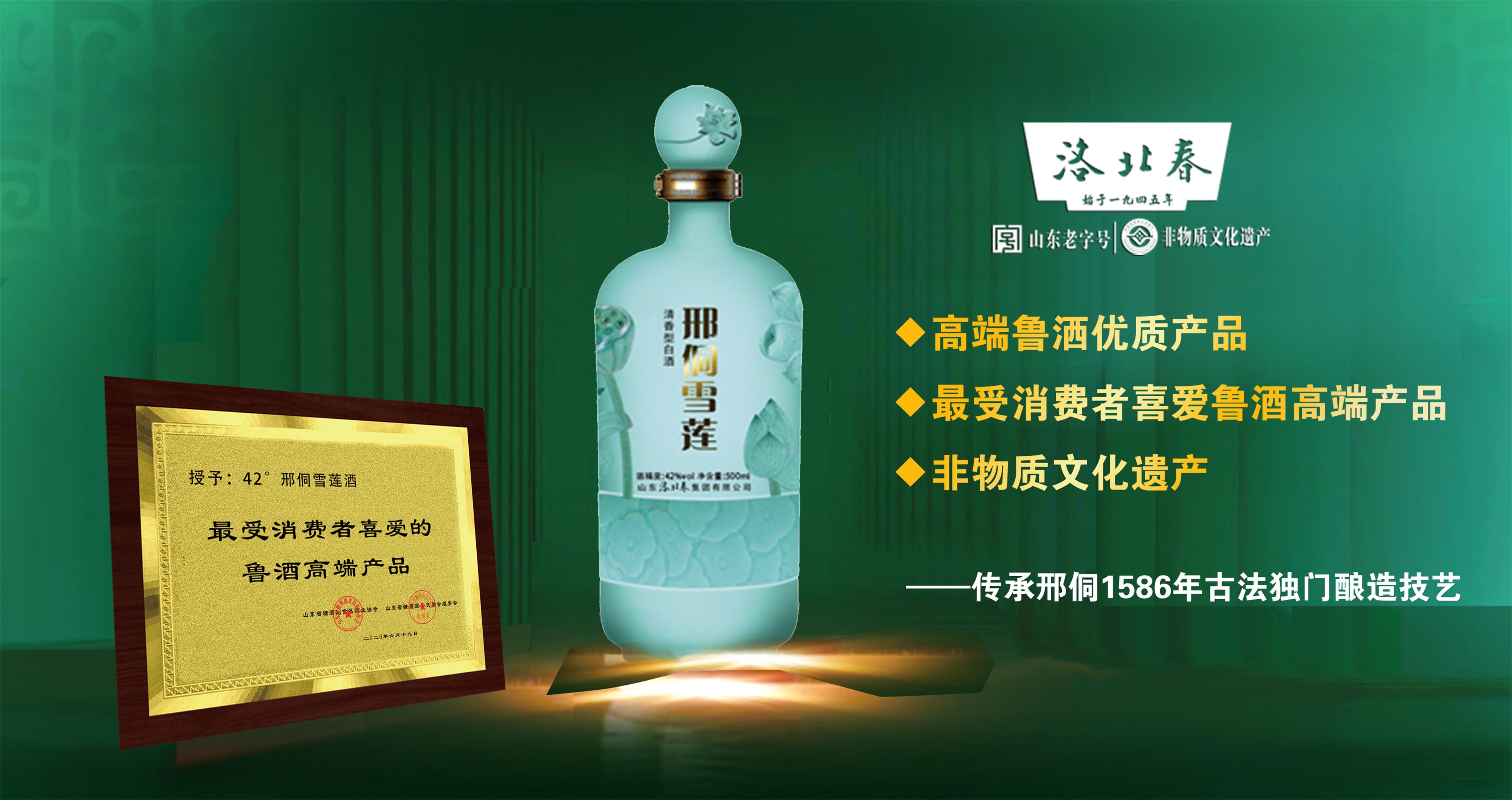 邢侗雪莲酒是洛北春集团生产的独具特色的香型白酒,传承邢侗1586荷花制曲独门技艺,现已被列为非物质文化遗产,被评为“2019年高端鲁酒优质产品”。采用传统生产工艺与邢侗家酿秘籍相结合、中高温曲与荷花春曲合理搭配,按不同的发酵周期配制而成。具有浓香突出、清雅细腻、绵甜净爽、回味悠长之特点,入口时又有一缕优雅清芬的荷花香气缓缓释出,久久绕舌……洛北春荷花曲酿造工艺被列为全国白酒创新团体标准。近年来,山东白酒企业发扬工匠精神,加强科技创新,工艺创新,致力于结构调整和转型升级,品质不断提升,产品迭代升级,鲁酒无论技术、生产工艺还是产品品质,都有与国名酒对标的资本,可以说,鲁酒的高端力量正在集体崛起。洛北春作为鲁酒的骨干企业,坚持匠心酿美酒,弘扬鲁酒工匠精神,积极实施创新,不断为推动高端鲁酒可持续健康发展助力!用实际行动承担鲁酒振兴和高质量发展的责任与担当。