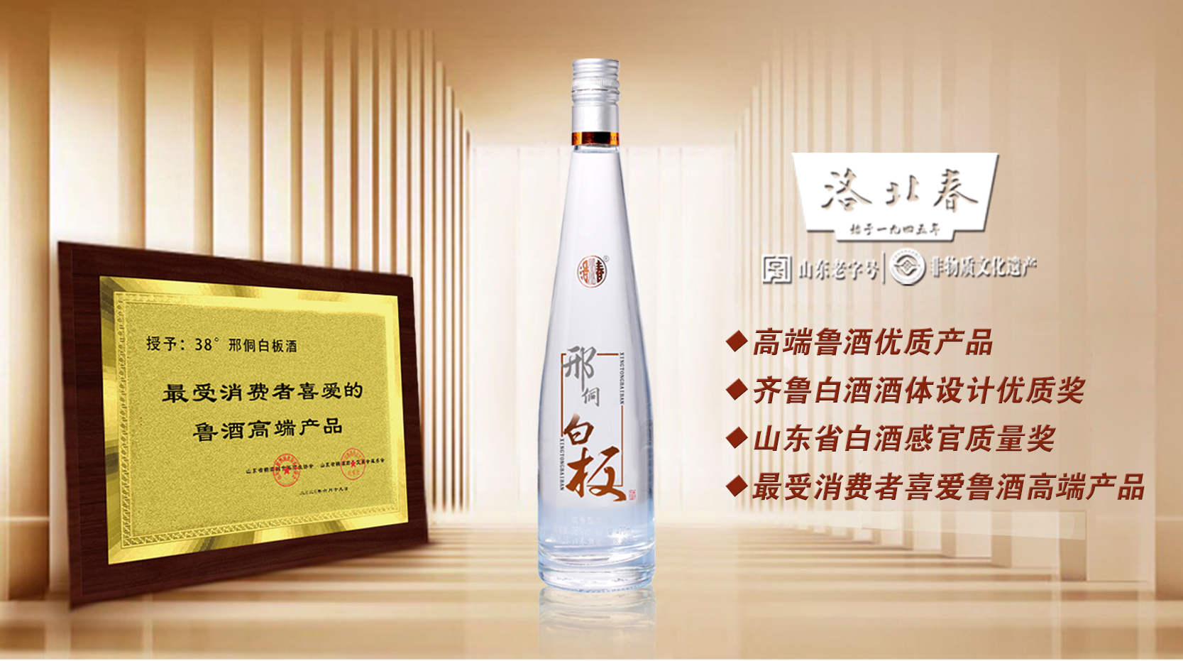 洛北春集团出品的邢侗白板酒和邢侗雪莲酒均被评为“2020年最受消费者喜爱的高端鲁酒产品”。邢侗白板酒 2020年最受消费者喜爱的高端鲁酒  邢侗白板酒是洛北春集团2018年重点推出的高线光瓶酒,酒质上乘、瓶形简约时尚,上市后深受广大消费者喜爱,并先后获得“2018年中国高端鲁酒优质产品”、“2019年齐鲁酒体设计优质奖”、“2019年山东省白酒感官质量奖”等多项殊荣。