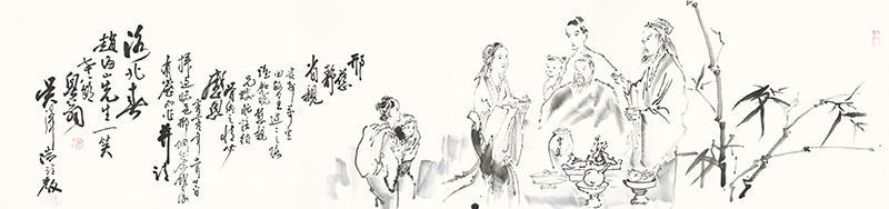 △上图为吴泽浩先生专为洛北春集团赠送墨宝(邢慈静省亲·邢侗雪莲酒)