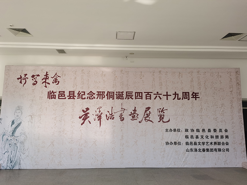 1月9日,由中共政协临邑县委员会、临邑县文化和旅游局主办,临邑县文学艺术界联合会、山东洛北春集团有限公司协办的吴泽浩先生《抒写来禽》”暨“临邑县纪念邢侗诞辰四百六十九周年吴泽浩书画展"在临邑县书画艺术馆成功举办。