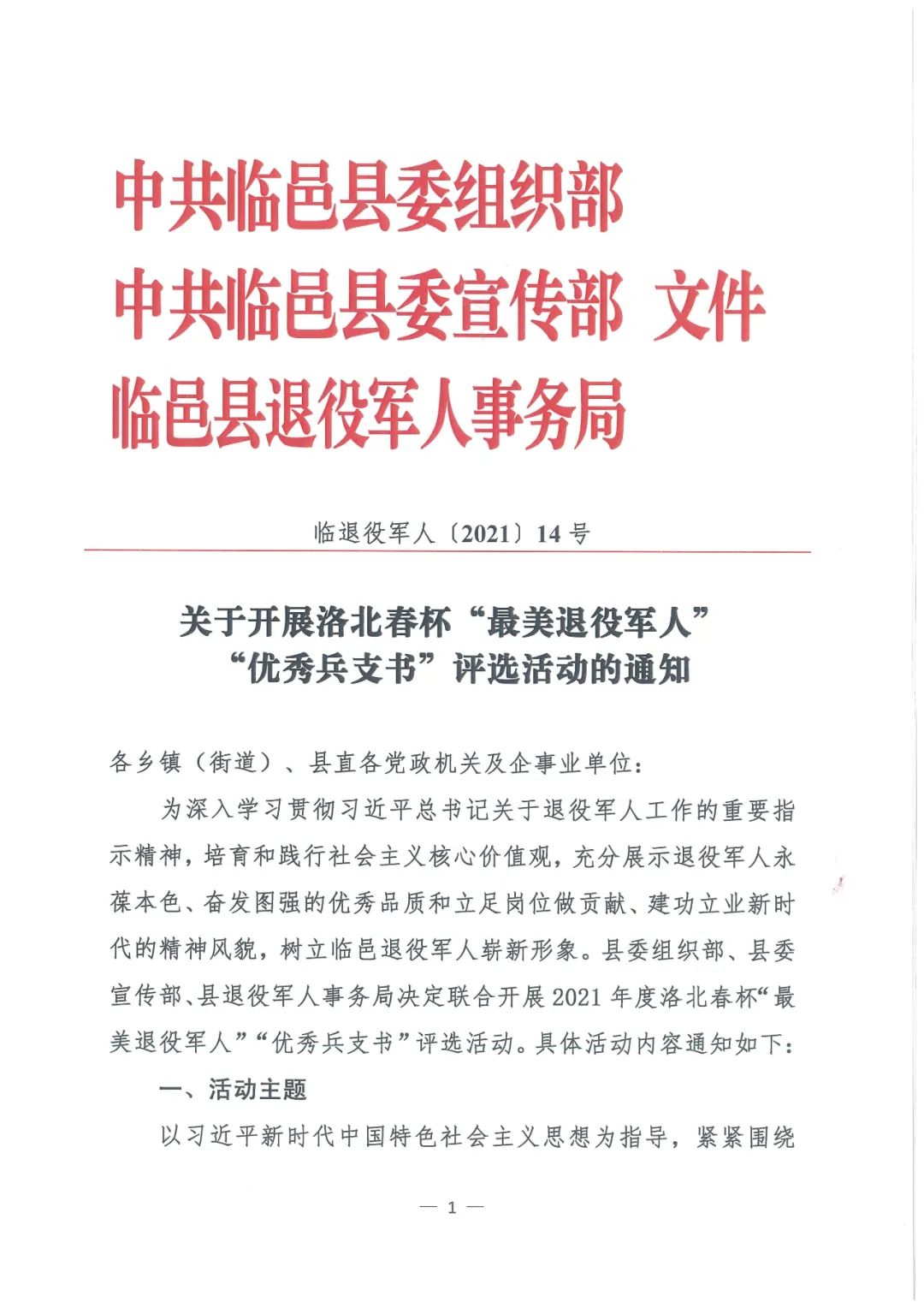 家乡洛北春杯“最美退役军人”“优秀兵支书”评选活动开始了
