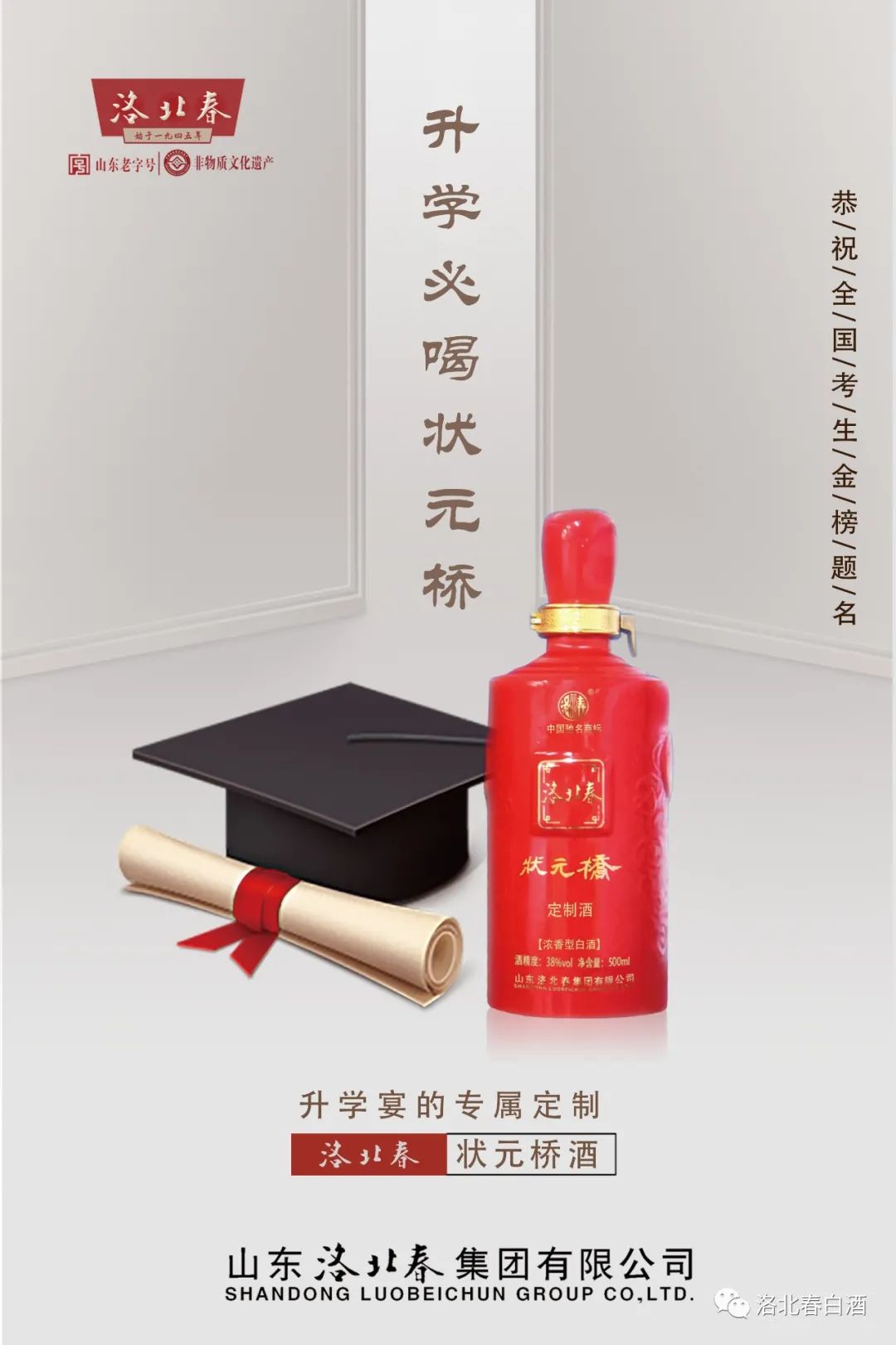 乘势而上千帆竞,策马扬鞭正当时,每一份荣耀都源自于深夜奋战的拼搏、风雨无阻的坚持!不久的明天你们将怀揣梦想与期许走向人生新的旅程。高考不是终点,而是崭新未来的起点。我们相信,未来和美酒一样,需要时间的酿造。而洛北春酒的品质和你们的未来,都会随着岁月的沉淀,历久弥香,成为家乡之荣耀。
