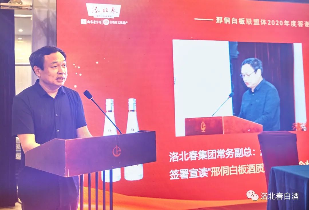 洛北春集团常务副总、国家级品酒师赵洪刚在会议上,对邢侗白板酒的品质,从专业性角度对饮前、饮后的口感、舒适度等做出了技术理论分析。